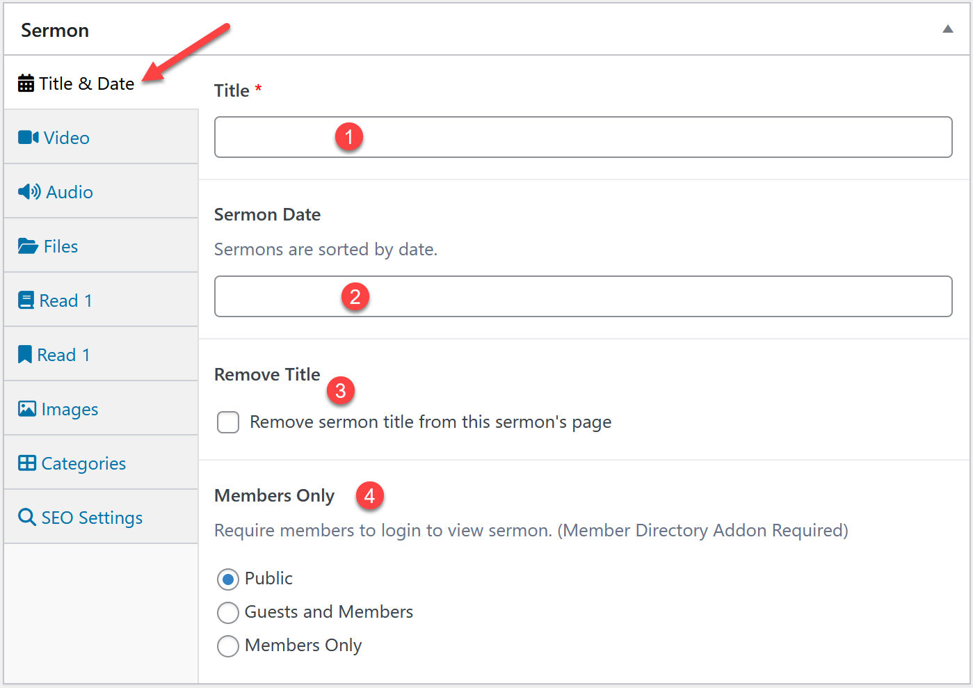 - If you'd like to require members to log in to view the sermon, you have that option as well. (Member directory add-on required)