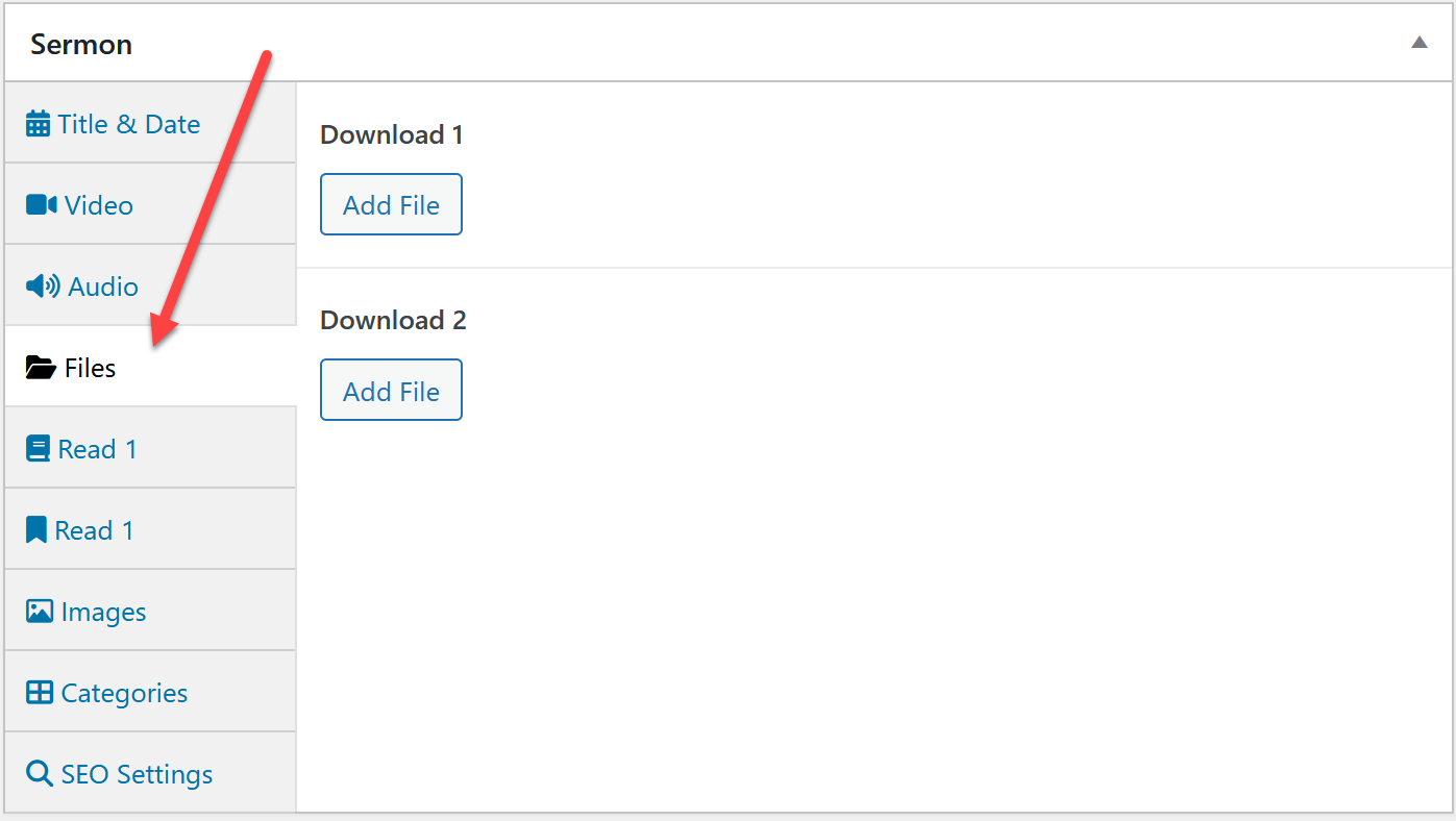 Each sermon can have up to two file attached. The file buttons can be renamed at sermons > sermon settings on the button text tab. So if you add two you can rename the buttons so people know what each file is. This is commonly used to add things like PDF bulletins or sermon outline doc files.
