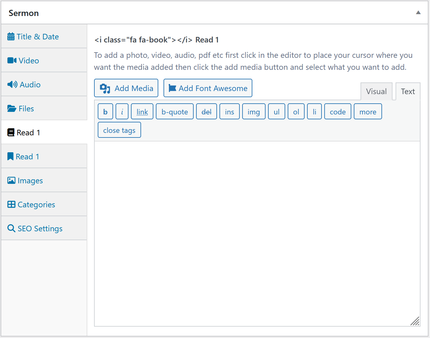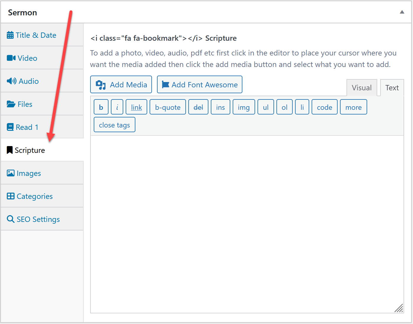 Header image - By default the sermon will use the default sermon header image set at sermons > sermon settings but if you want this sermon to use a different image set it here.