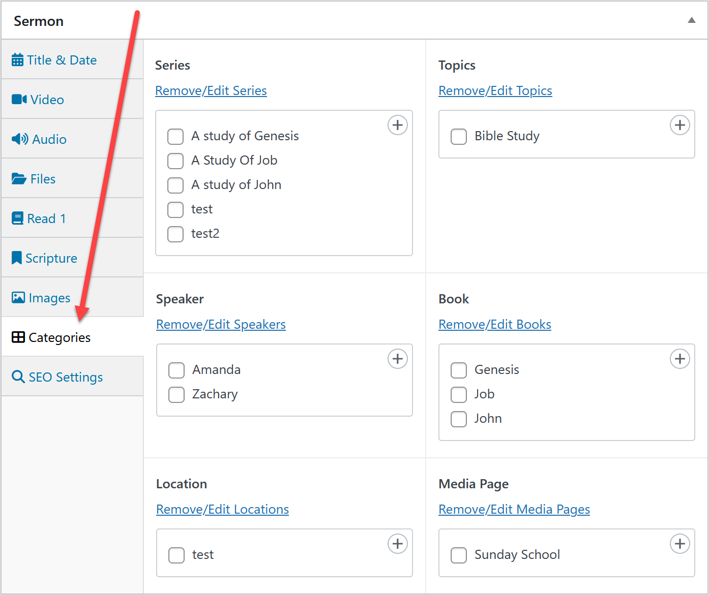 - Set the sermon date. The default date will be the day you publish the sermon if you don't set the date.