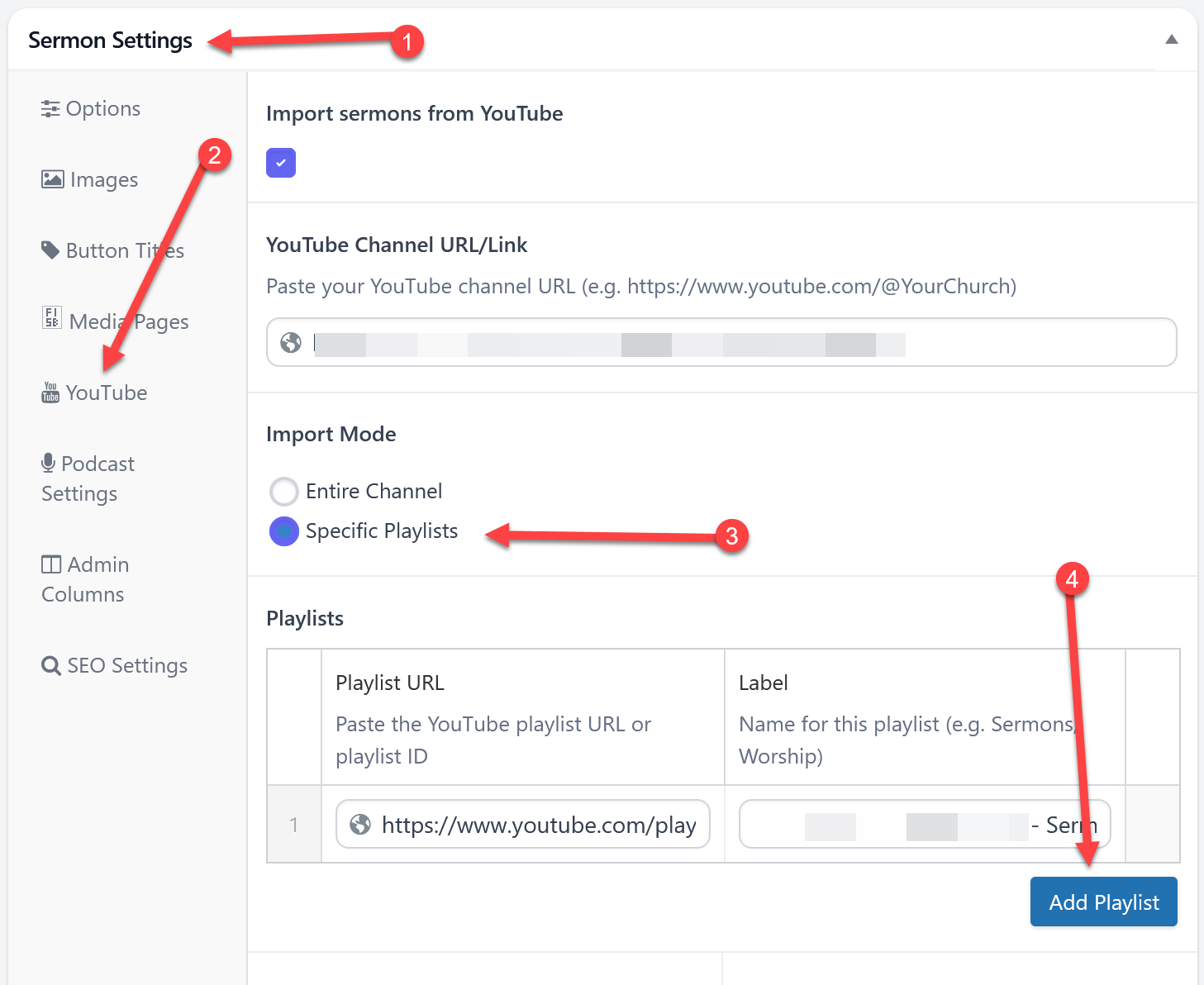 YouTube Playlist Import Playlist support has been added to the YouTube import system. You can now choose to import only the videos from the playlist or playlists you want. Big shout-out to Justin C. from Plum Creek Baptist Church in Taylorsville, KY for sending this feature request — much appreciated!